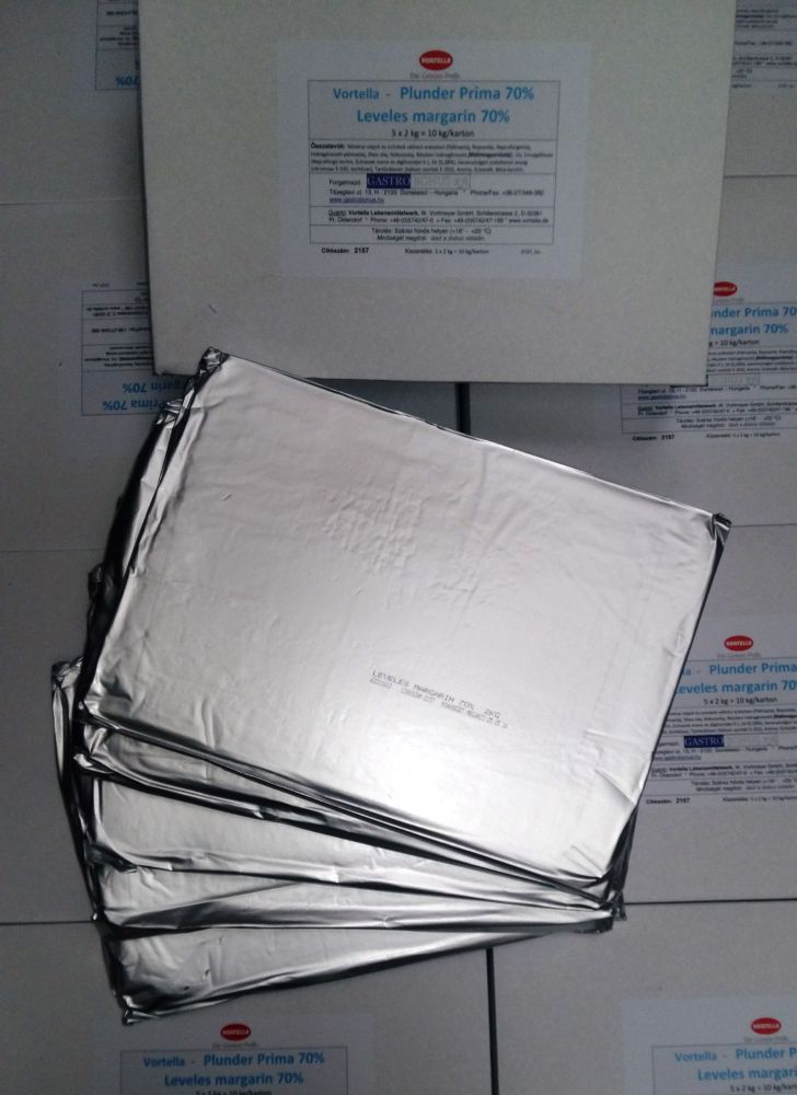 A "Plunder Príma 70" valamint a "Puff Pastry 80" állaga kellően puha a bedolgozáshoz illetve azon felül, hogy lapra vannak szeletelve, a lapok (2kg/lap) külön- külön bevannak csomagolva. A "Zieh Spezial 80" pedig 10x1kg os lapokra vannak szeletelve.
